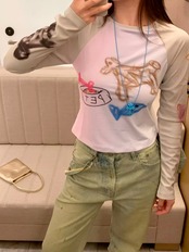 韓国ファッション OPEN YY オープンワイワイ レディース トップス Tシャツ PET DRAWING RAGLAN TEE
