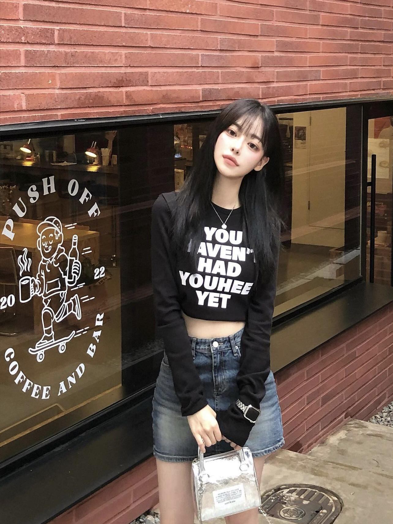 韓国ファッション 人気 YOUHEE ユヒ レタリング 長袖 Tシャツ LETTERING LONG SLEEV.E ブラック