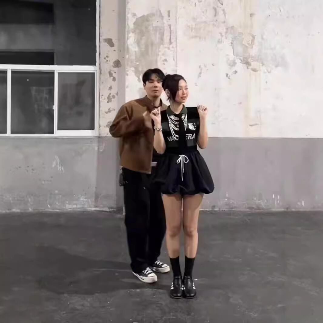 VAQUERA ジェニ着用 ストライプ トップ ブラック&グリーン プリント ニットポロシャツ