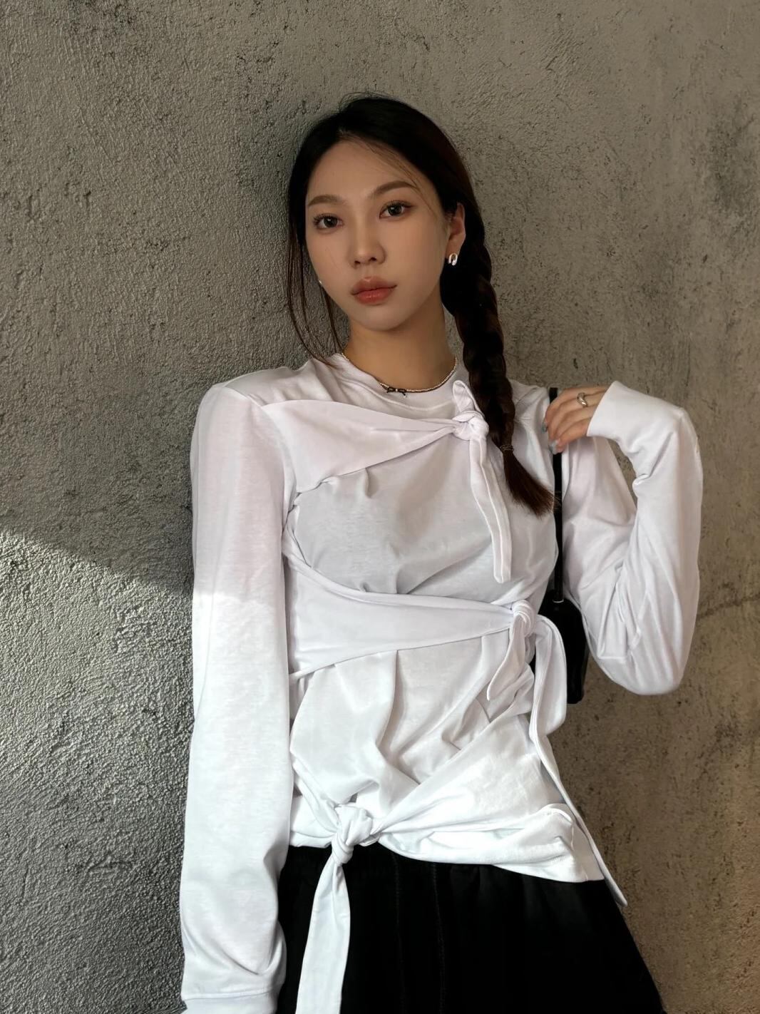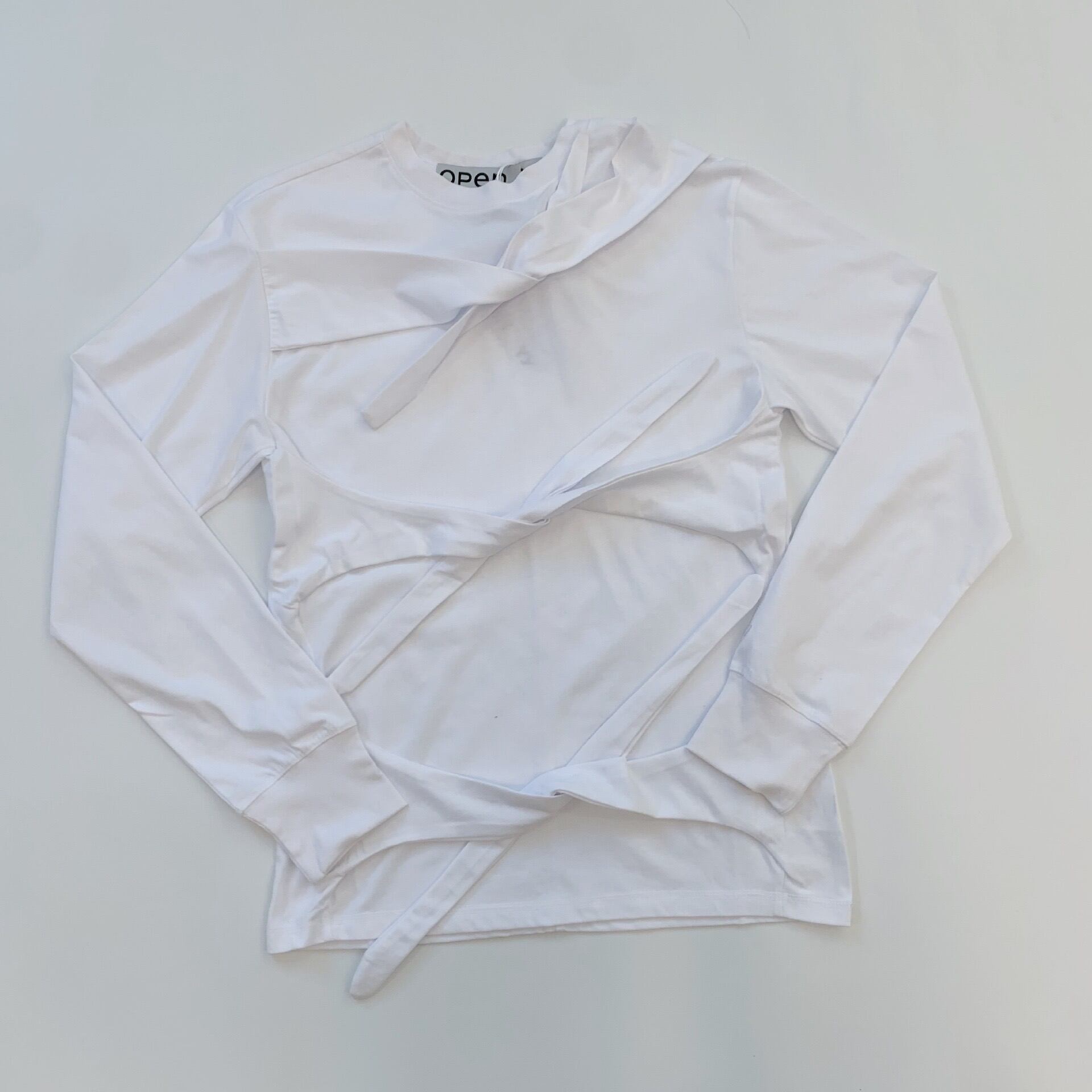 韓国 OPEN YY_TheOpen Product オープンワイワイ_ザオープンプロダクト 長袖 Tシャツ レディースファッション トップス TRIPLE KNOT CREW NECK TOP WHITE