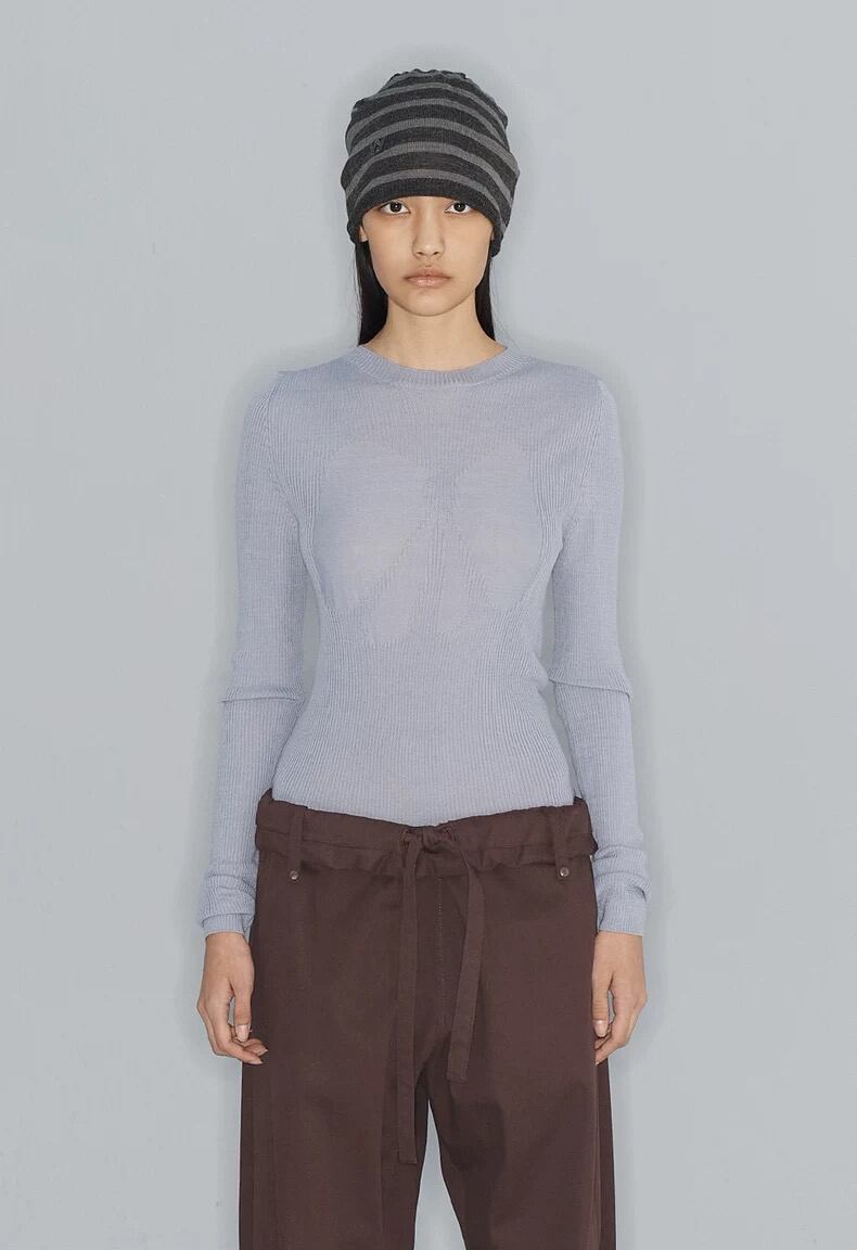 韓国 ファッション OPEN YY_TheOpen Product オープンワイワイ_ザオープンプロダクト レディース 長袖 トップス リボン ジャカード デザイン Tシャツ RIBBON RIB KNIT PURPLE