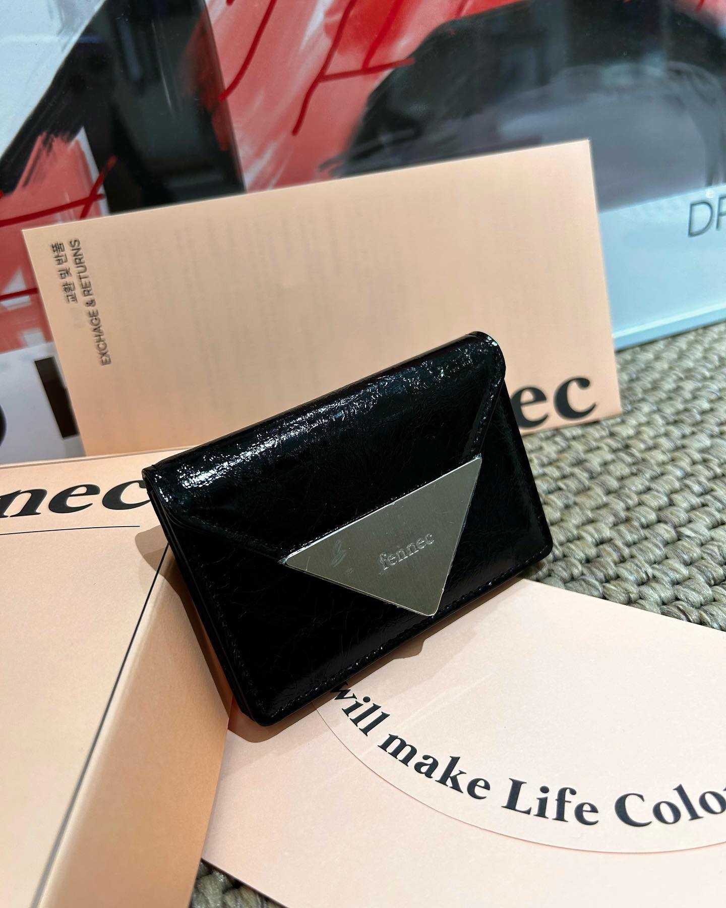 韓国ファッション Fennec フェネック 三つ折り財布 財布 小物 カードケース 名刺入れ 折りたたみ財布 CRINKLE TRIANGLE TRIPLE WALLET ブラック