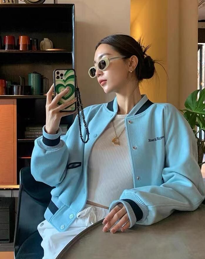 韓国 ファッション Rest & Recreation レストアンドレクリエーション アウター ジャケット RR BOUCLE EMBROIDERY VARSITY JACKET SKYBLUE