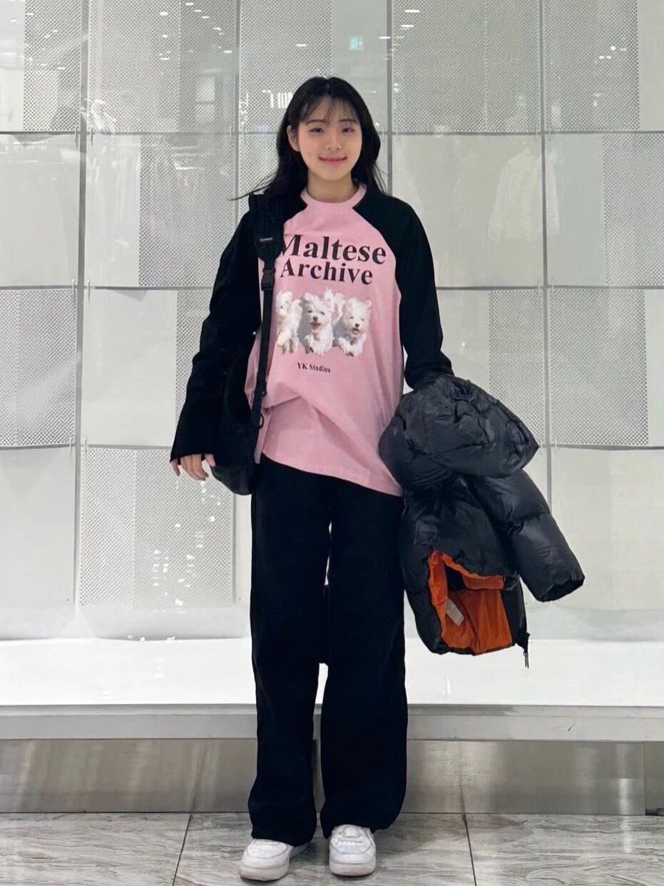 人気 WaiKei ワイケイ 韓国ファッション レディース Tシャツ 長袖 長袖Tシャツ 犬 マルチーズ Maltese archive raglan long sleeve tshirts ピンク