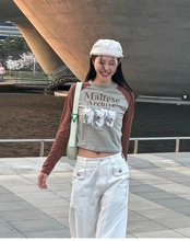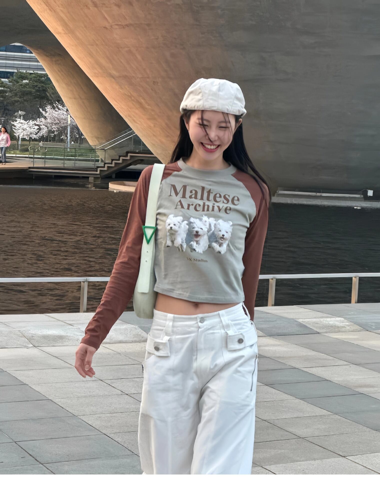 韓国ファッション WaiKei ワイケイ トップス Tシャツ 長袖 長袖Tシャツ 犬 マルチーズ Maltese archive raglan long sleeve tshirts ミント
