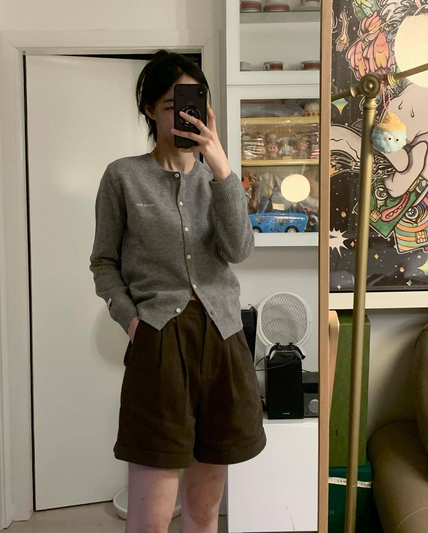 人気 overdue flair オーバーデューフレア 韓国 ファッション トップス クルーネック カーディガン OVERDUE WOOL CARDIGAN グレー
