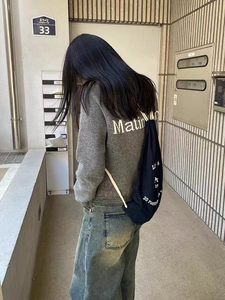 韓国 Matin Kim マーティンキム レディース セーター 長袖 ジップアップニット SPELL POINT KNIT ZIP UP グレー
