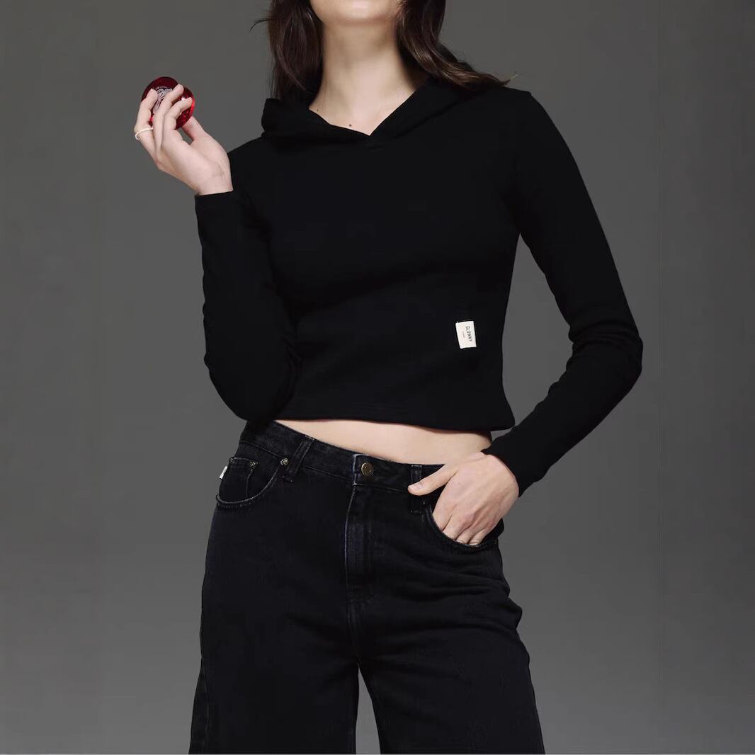 韓国 GLOWNY グロウニーレディース ファッション 長袖 トップス パーカー フーディ G COMFORT HOODIE ブラック