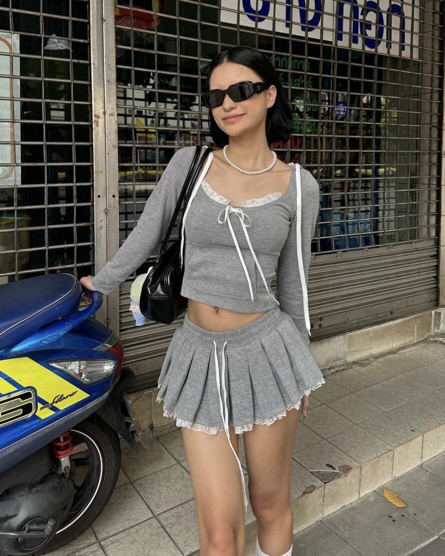 大人気 LSEOUL ミヨン着用 ファッション Tシャツ 長袖 トップス ミニスカート セットアップ CALOS SET