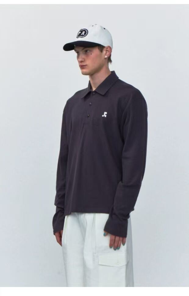 韓国人気 Rest & Recreation レストアンドレクリエーション 長袖 ポロ トップス Tシャツ RR LONG SLEEVE POLO TOP DARK GREY