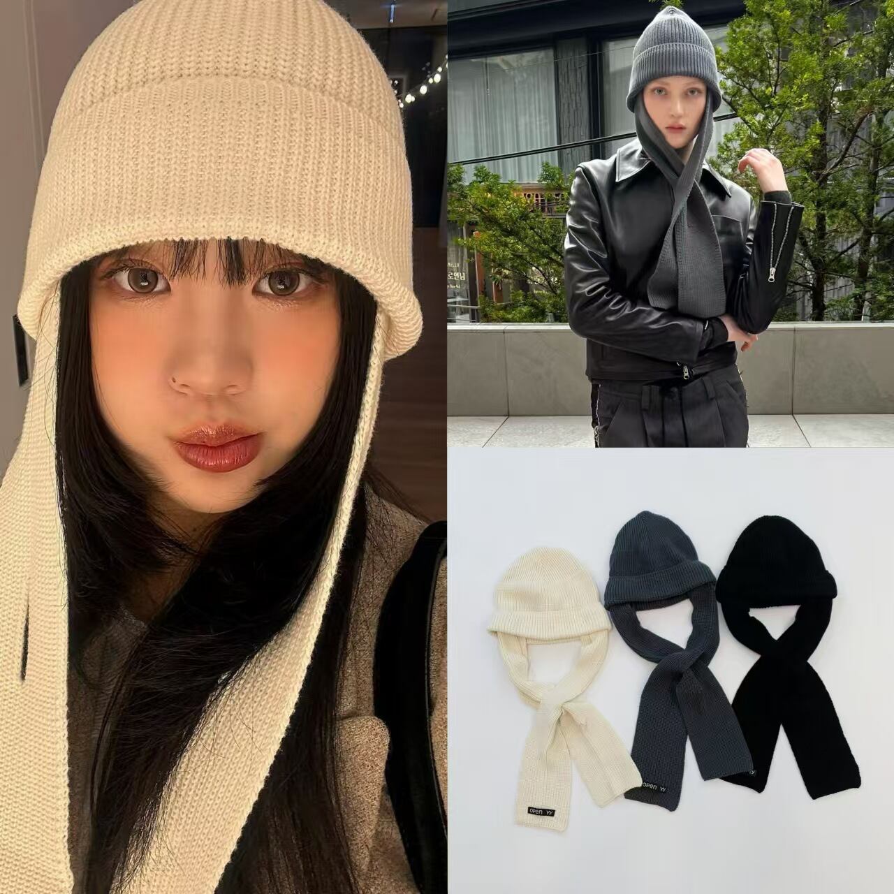 人気 OPEN YY オープンワイワイ 韓国ファッション ジェニー着用 帽子 マフラー ビーニー ニットキャップ SCARF BEANIE IVORY