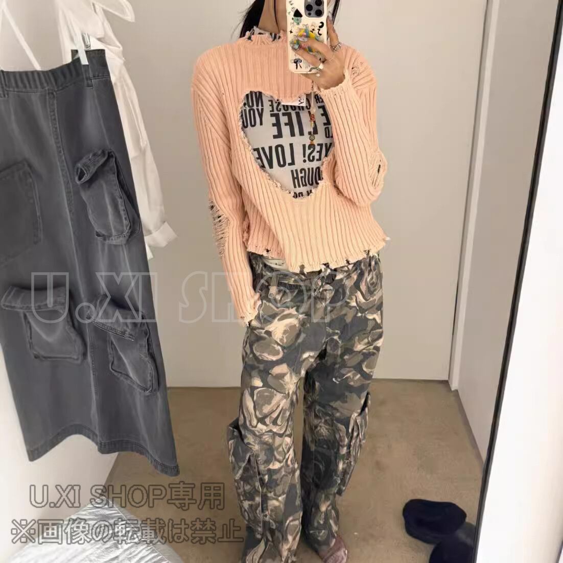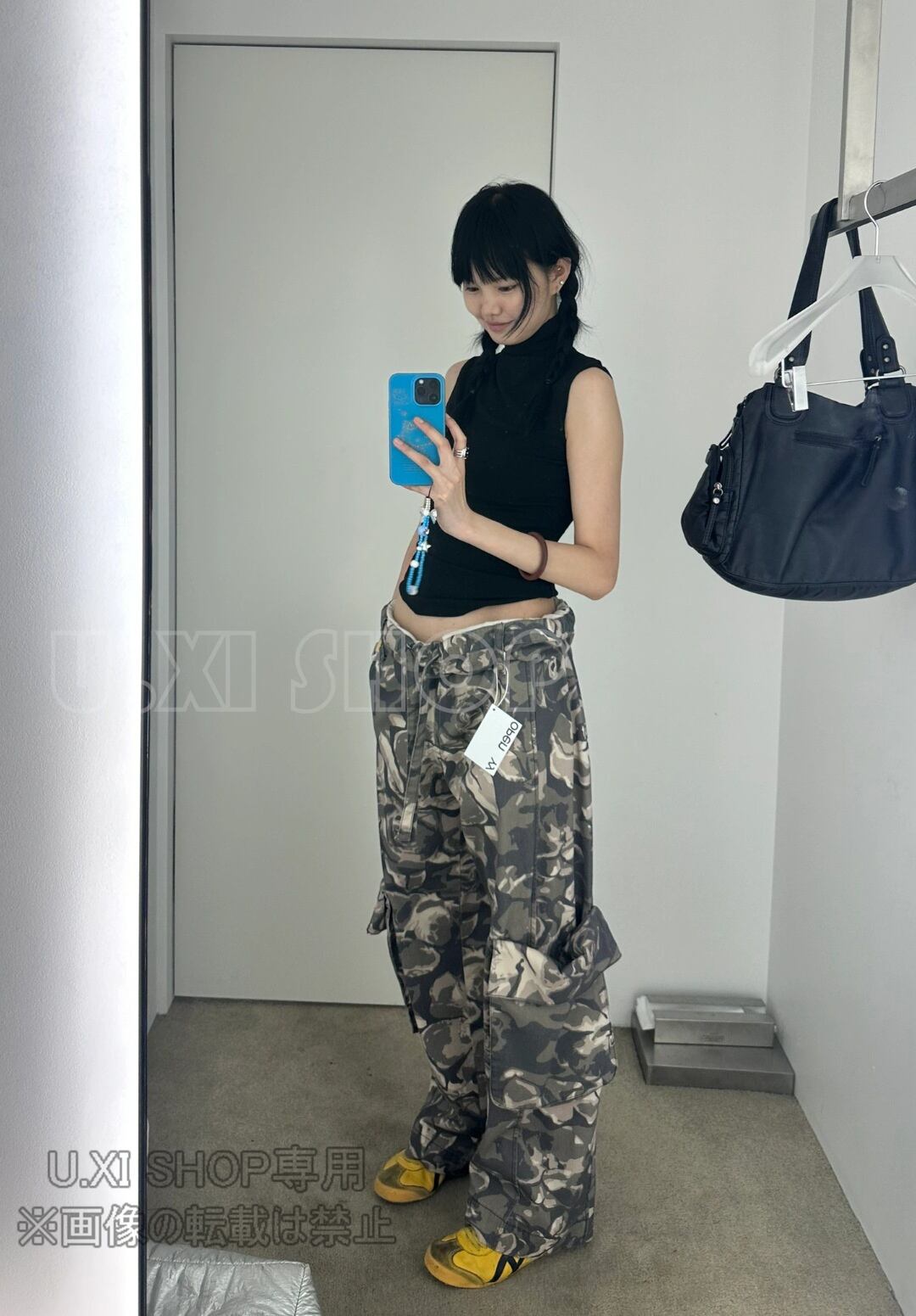新品 韓国 ファッション オープンワイワイ ボトムス パンツ ロールウエスト カーゴパンツ カモフラージュ 迷彩 レディース おしゃれ 韓国 韓国の人気 カジュアル #b473