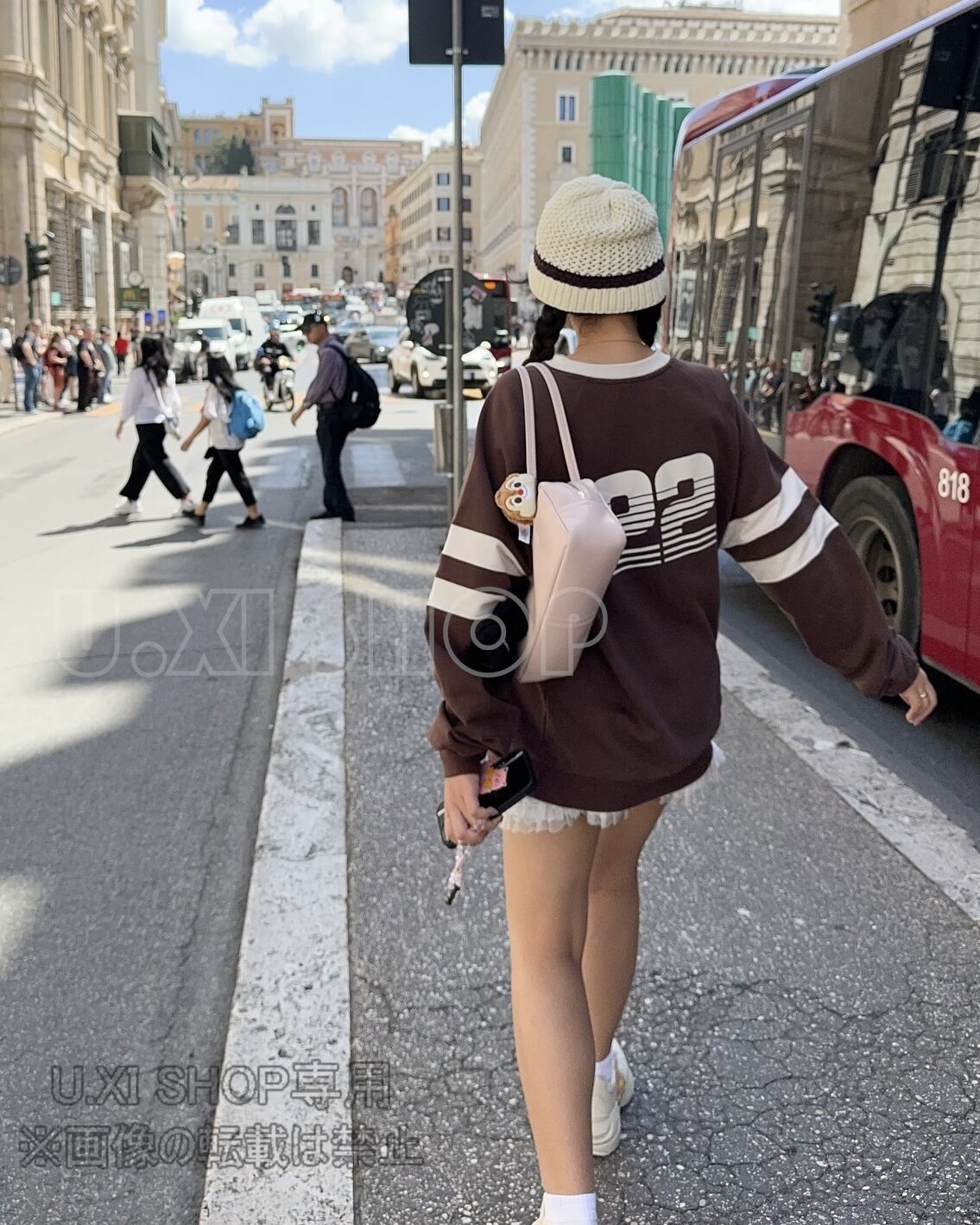 新品 韓国ファッション レストアンドレクリエーション ロゴ 長袖 トレーナー トップス スウェット ロンT 長袖 レディース メンズ 男女兼用 おしゃれ ファション ゆったり ブラウン #c218