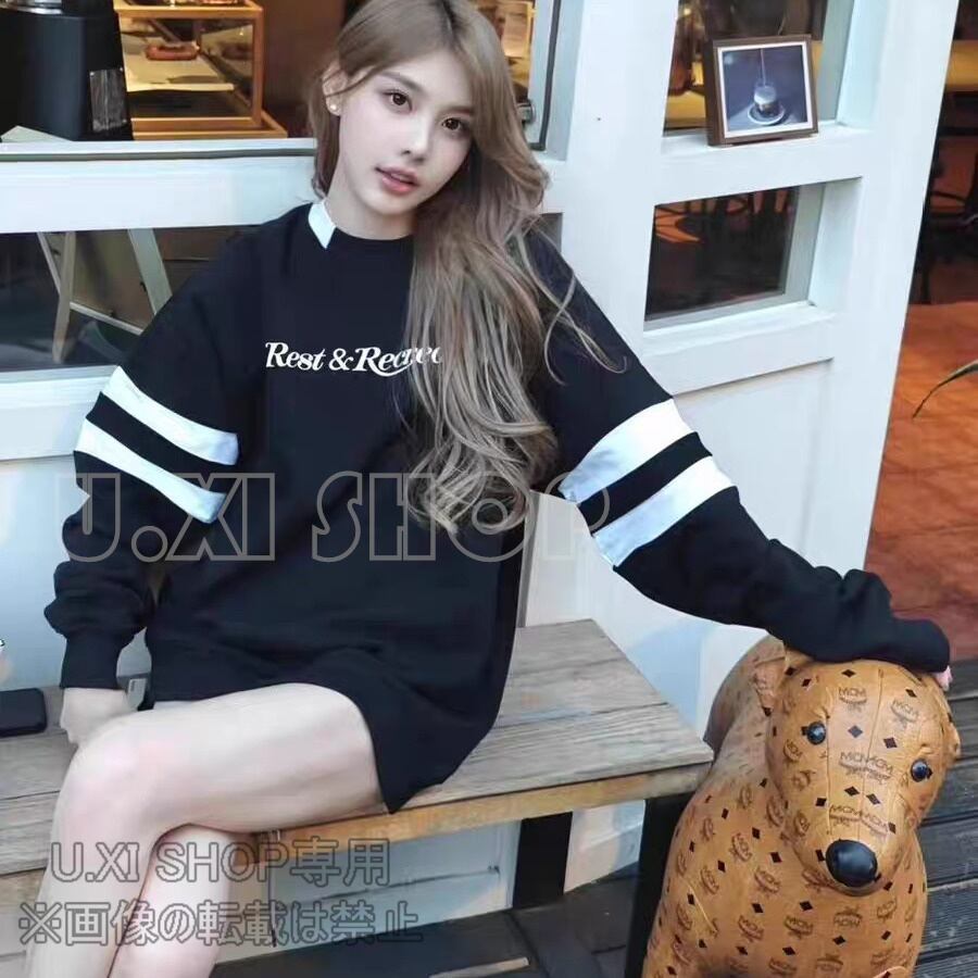 新品 韓国ファッション レストアンドレクリエーション ロゴ 長袖 トレーナー トップス スウェット ロンT 長袖 レディース メンズ 男女兼用 おしゃれ ファション ゆったり ブラック #c218