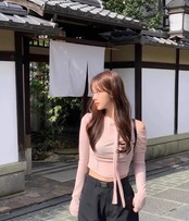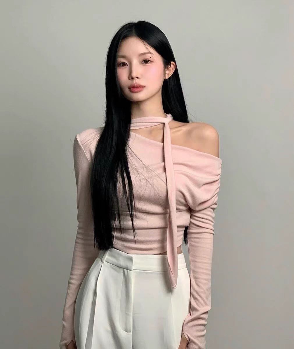 人気 韓国 ノットユアローズ NOT YOUR ROSE カットソー Tシャツ aespa ウィンター チャン・ウォニョン着用 Shirring scarf tshirt PINK