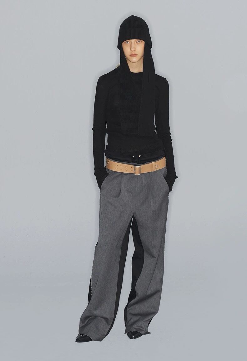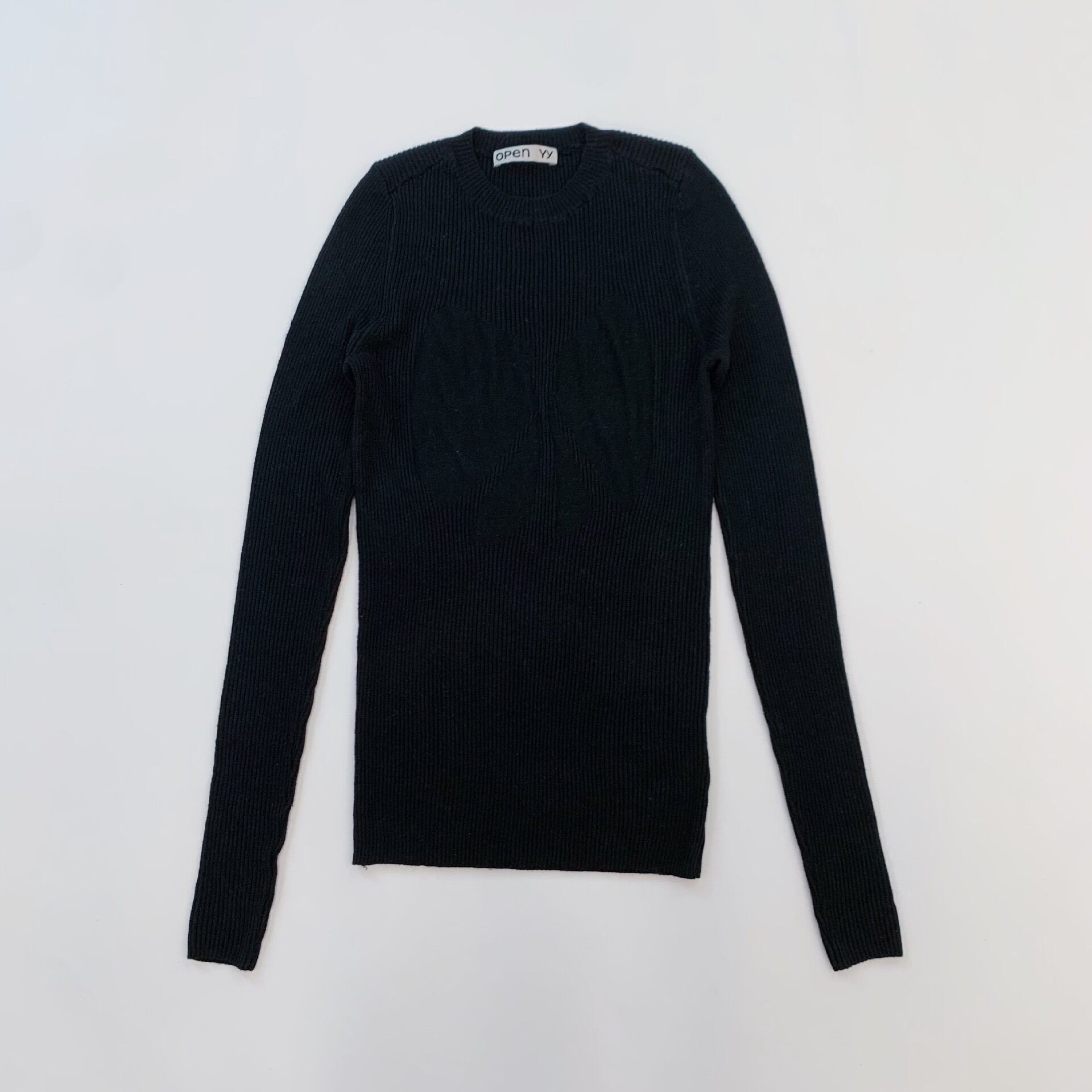 大人気 韓国 OPEN YY_TheOpen Product オープンワイワイ_ザオープンプロダクト レディースファッション 長袖 トップス リボン ジャカード デザイン Tシャツ RIBBON RIB KNIT BLACK