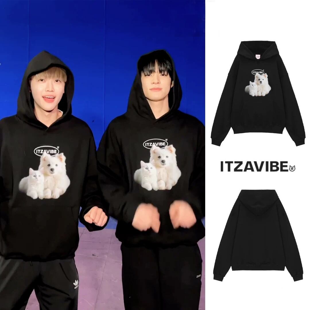 韓国 ITZAVIBE イッザバイブ NCT ジェミン ジェノ着用 パーカー フーディー トップス CAT&DOG FRIENDS HOODIE
