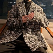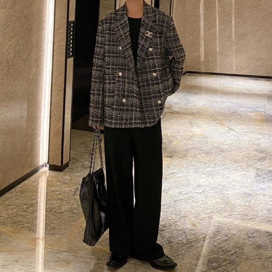 ツイード テーラードジャケット アウター ジャケット メンズ カジュアル 秋冬 韓国