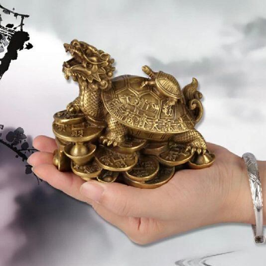 風水では、龍亀は、一番の財を集めてくれるシンボルといわれており、特にお金の山の上に乗っている龍亀は、多くのお金(金運)をもたらしてくれるといわれています