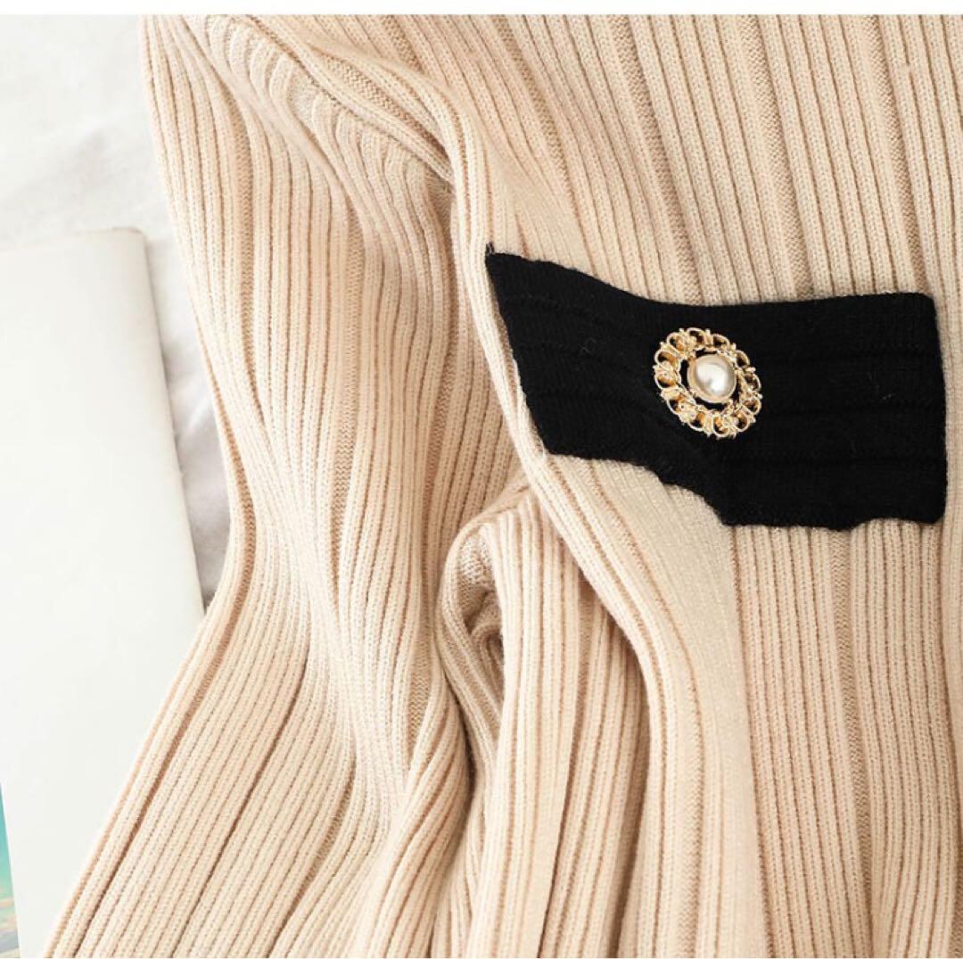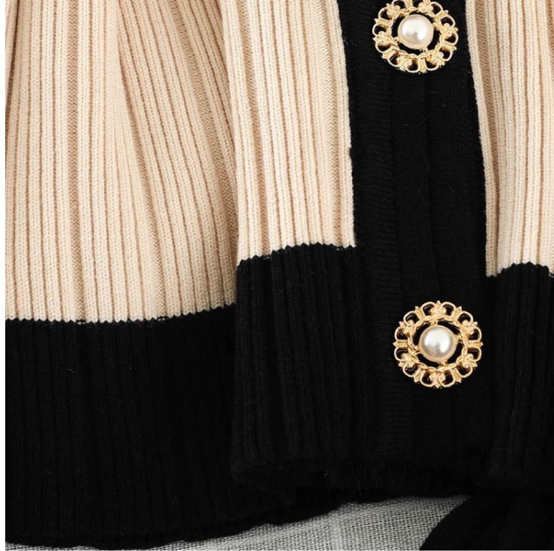 ベージュ×黒?ニットセットアップ カーデ+スカート 秋冬 韓国