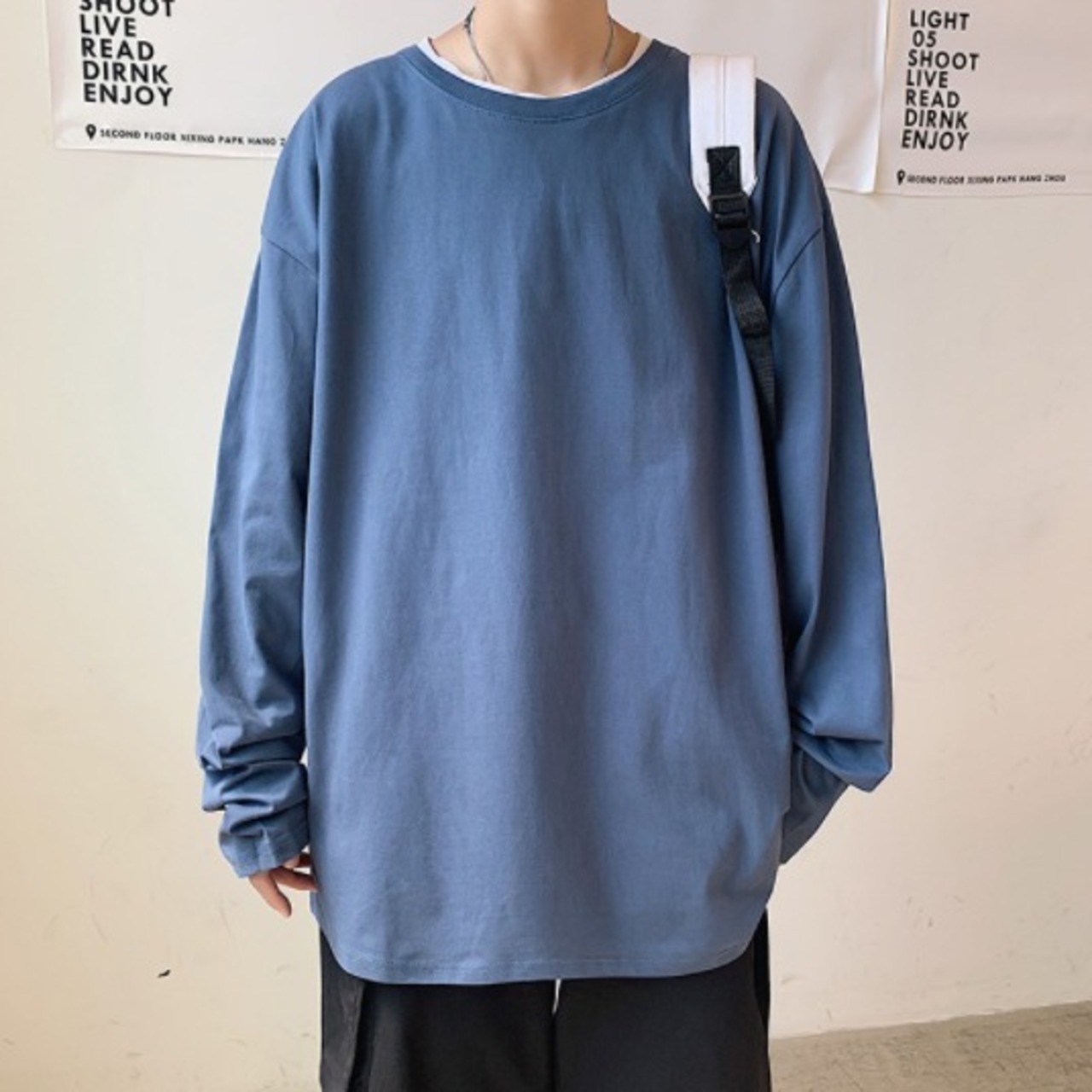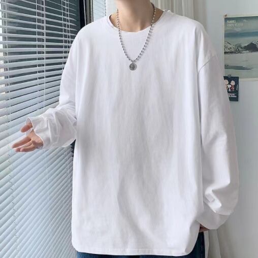 メンズ 長袖 オーバーサイズ ラウンドネック ロンT Tシャツ 無地