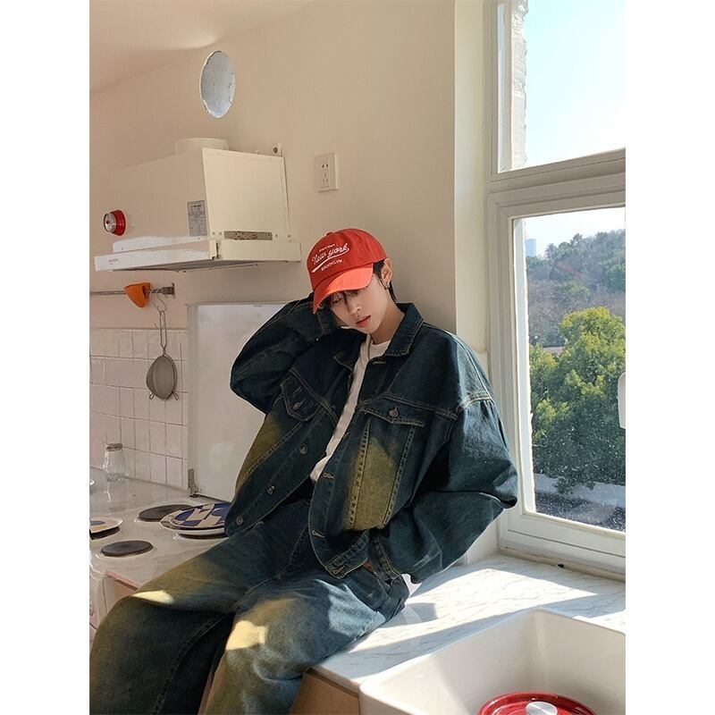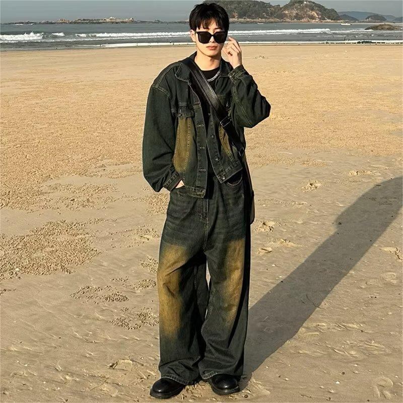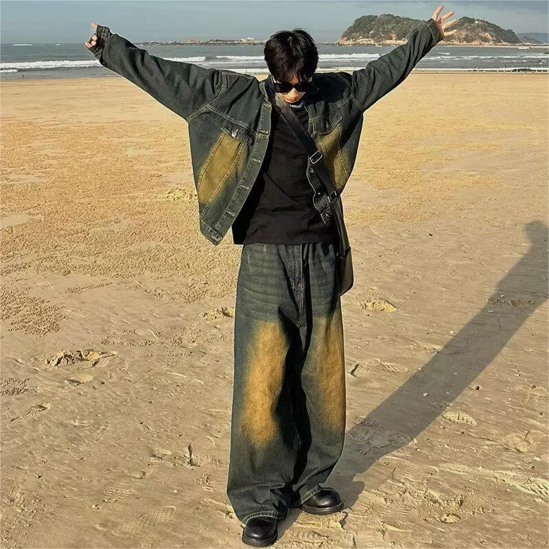 ワイド デニム セットアップ ウォッシュド 上下 韓国 nr1230