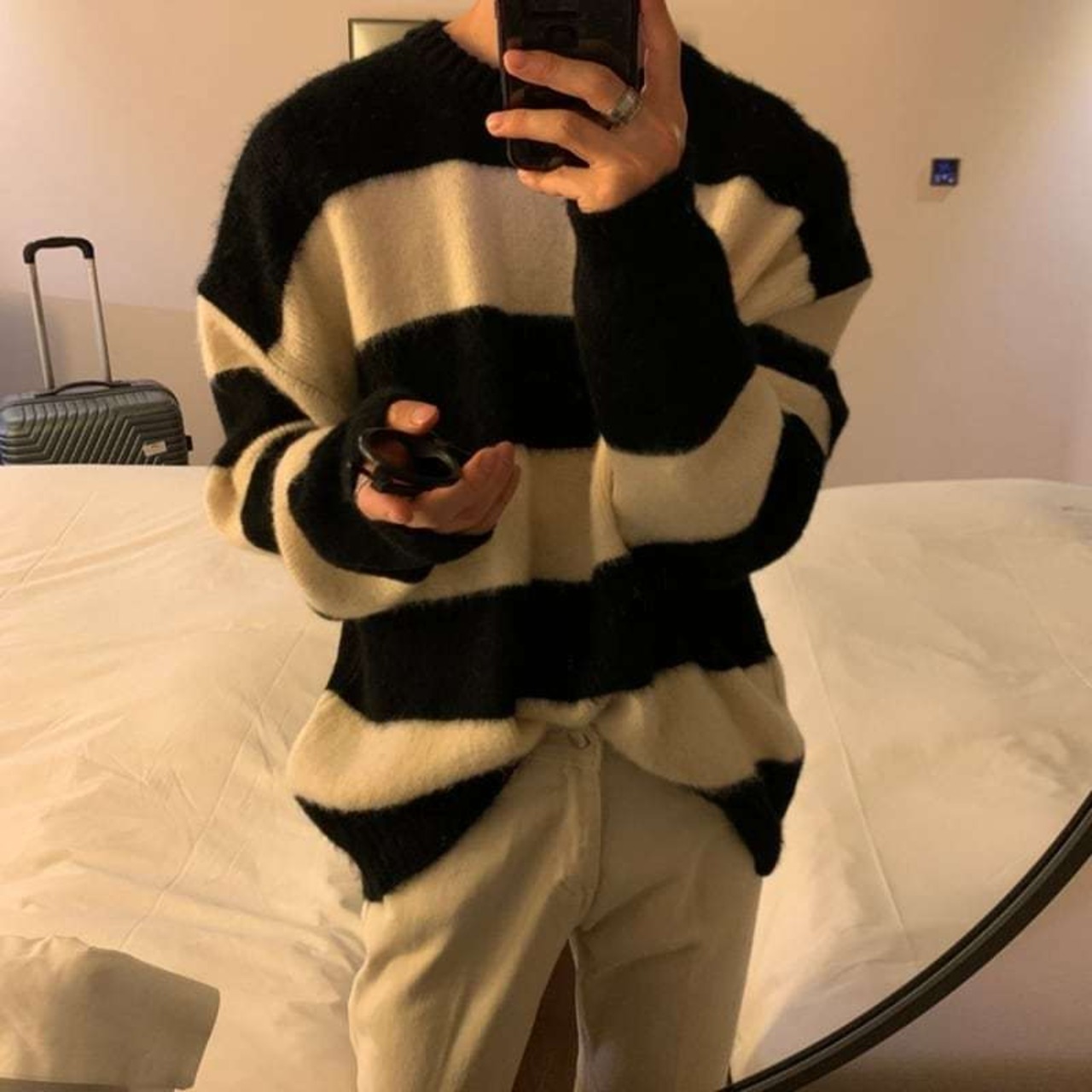 ボーダー ニット トップス ルーズ 全3色 カジュアル 韓国 ck6702