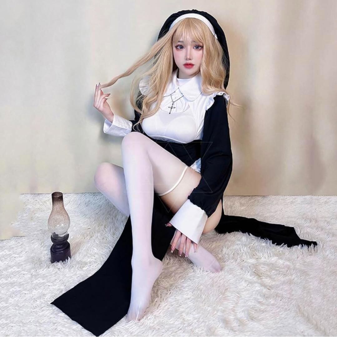 ボディーラインを強調し、清潔感とエロテッィクさが融合されたシスター風コスチュームです(*^^*)