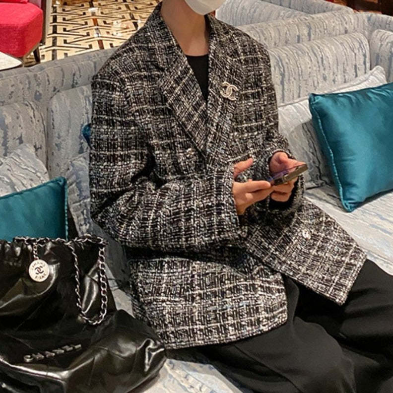 ツイード テーラードジャケット カジュアル 秋冬 韓国 ck6131