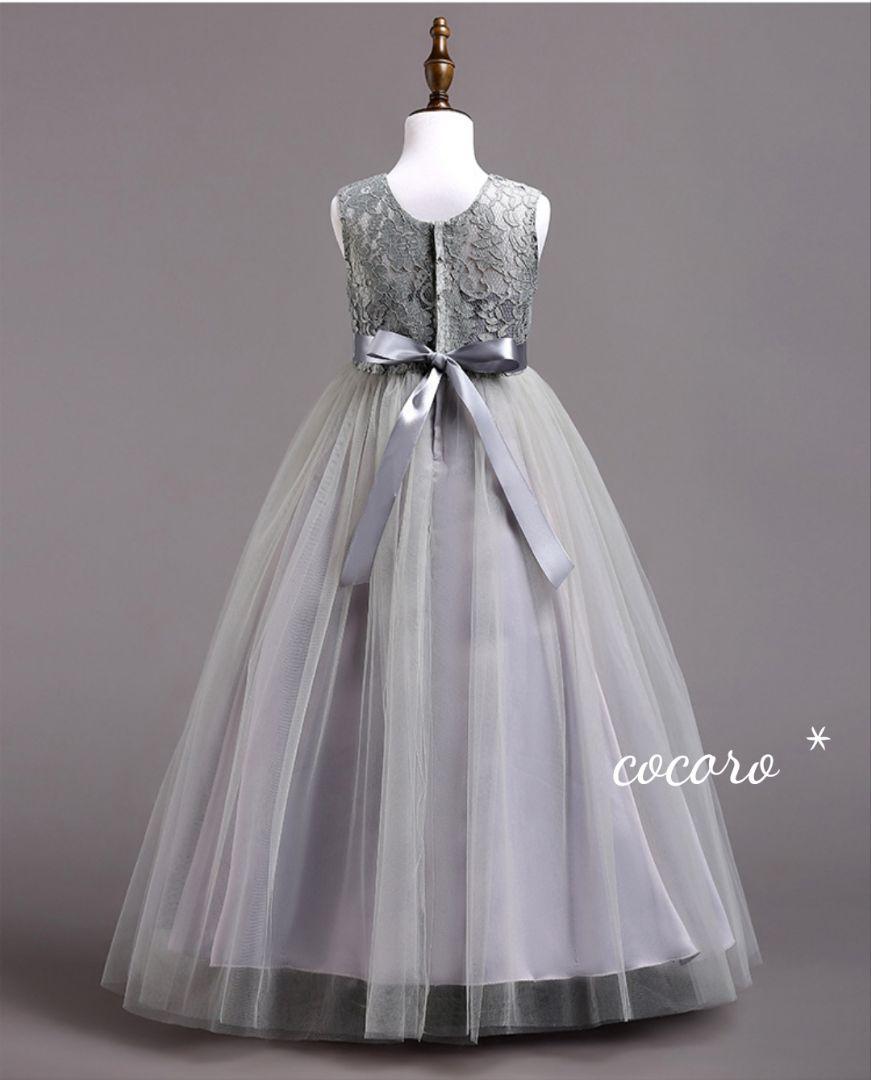 新作 レースチュールロングドレス キッズ服(女の子用) グレー