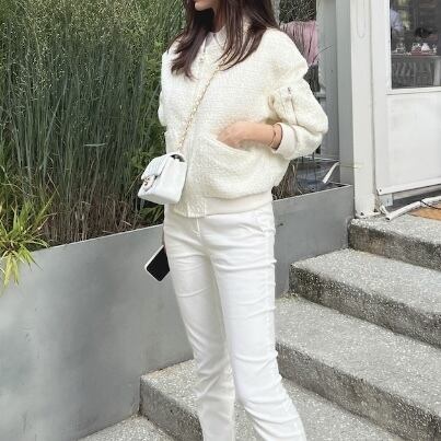 韓国 ツイード ブルゾン 春秋 アウター パール 大人気 新品