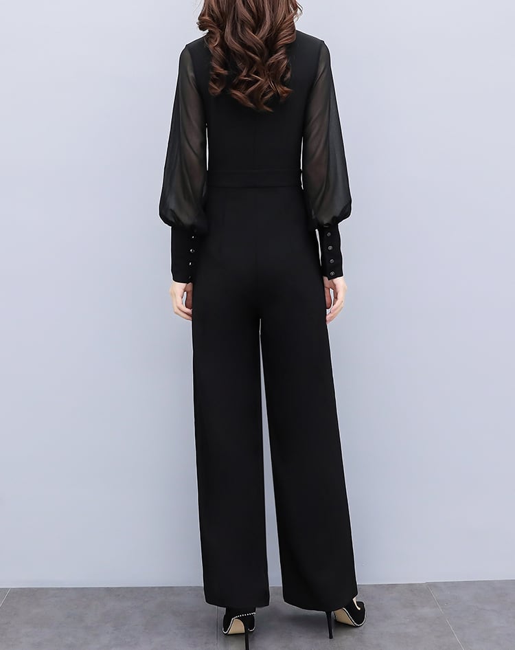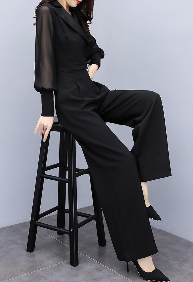 パンツドレス オールインワン ハイウエスト パーティー 上品 黒