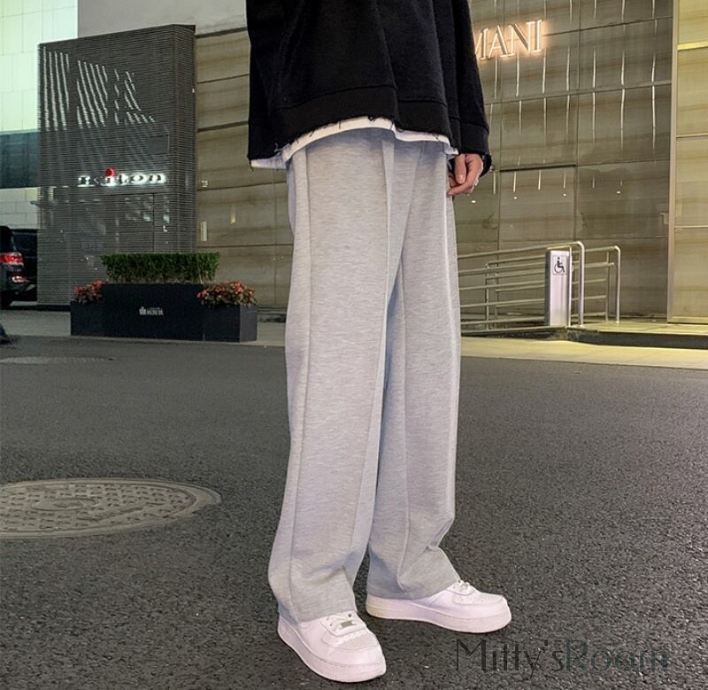 シンプル無地 メンズ センタープレス 韓国 リラックスパンツ 全2色