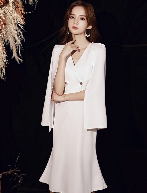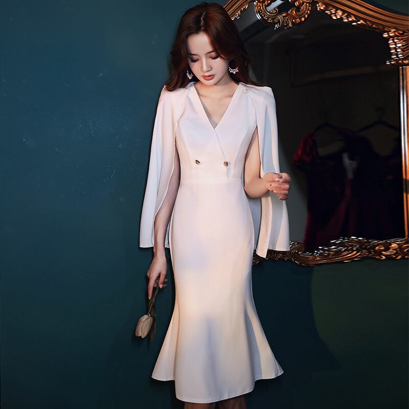 上品 スキニー ケープ風 ワンピース ドレス パーティー マーメイド 2色