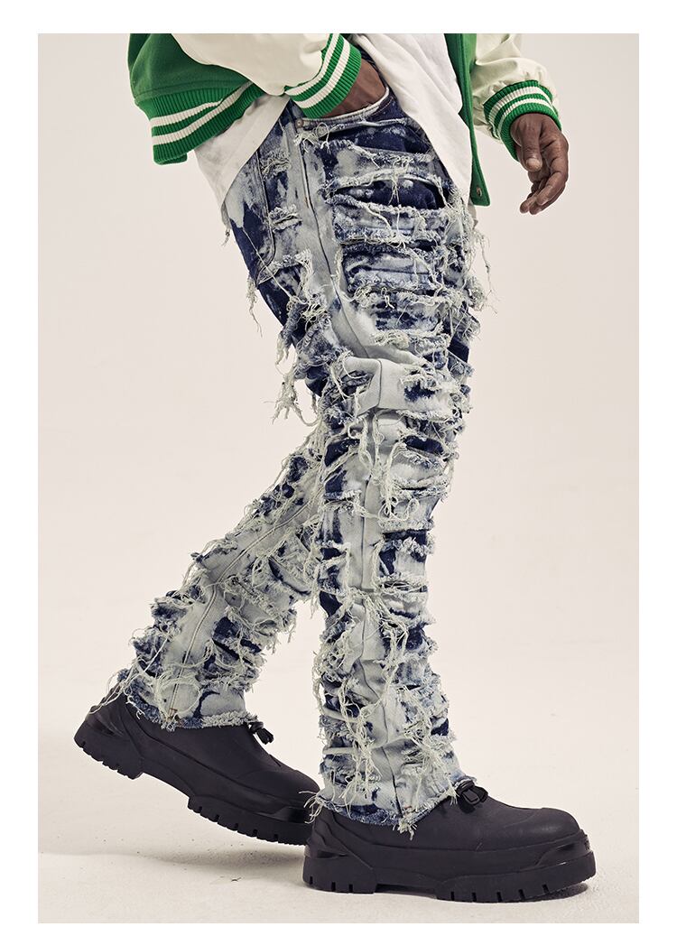 個性 クラッシュ デニム ストリート フリンジ ダメージーンズ