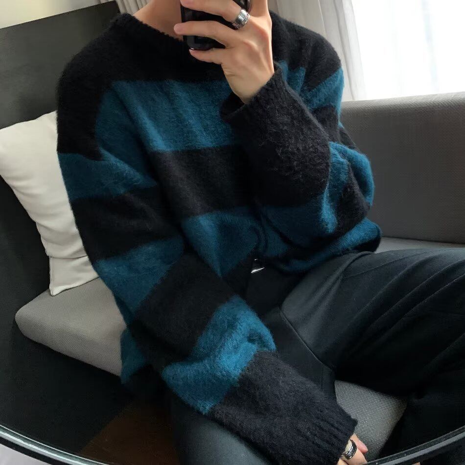 個性 ボーダー ニット トップス ルーズ 全3色 カジュアル 韓国 スタイリッシュ セーター