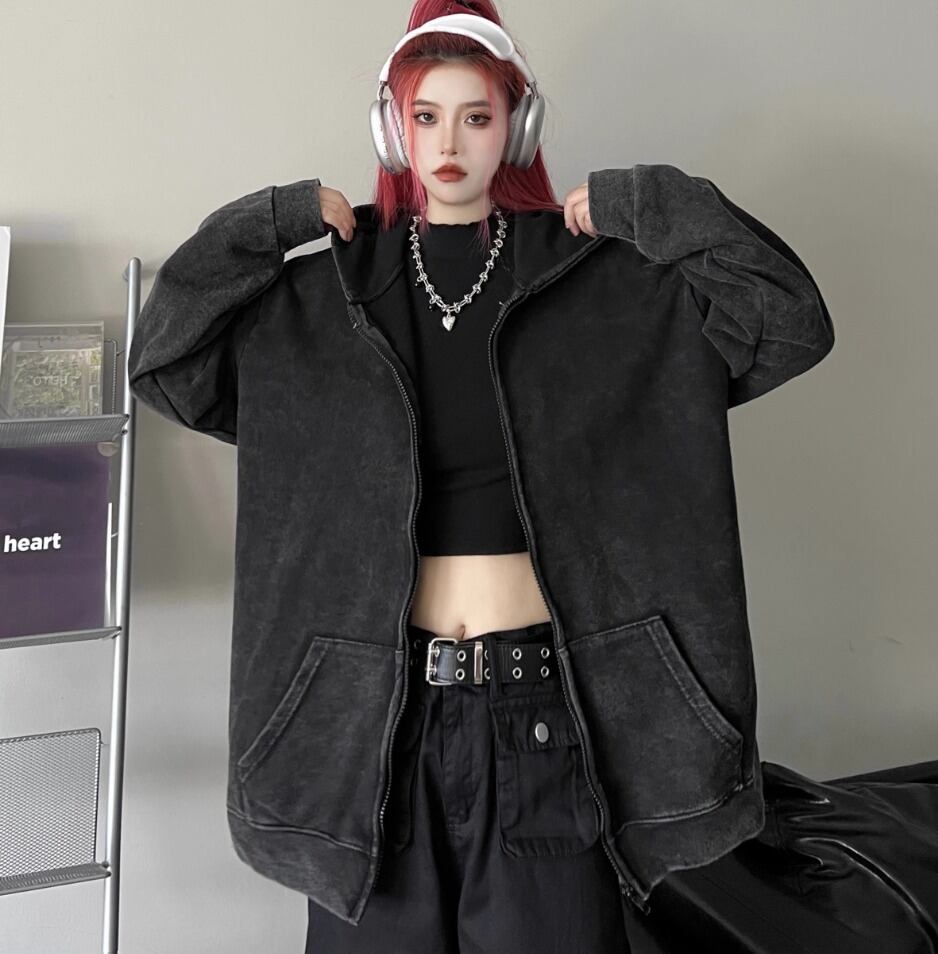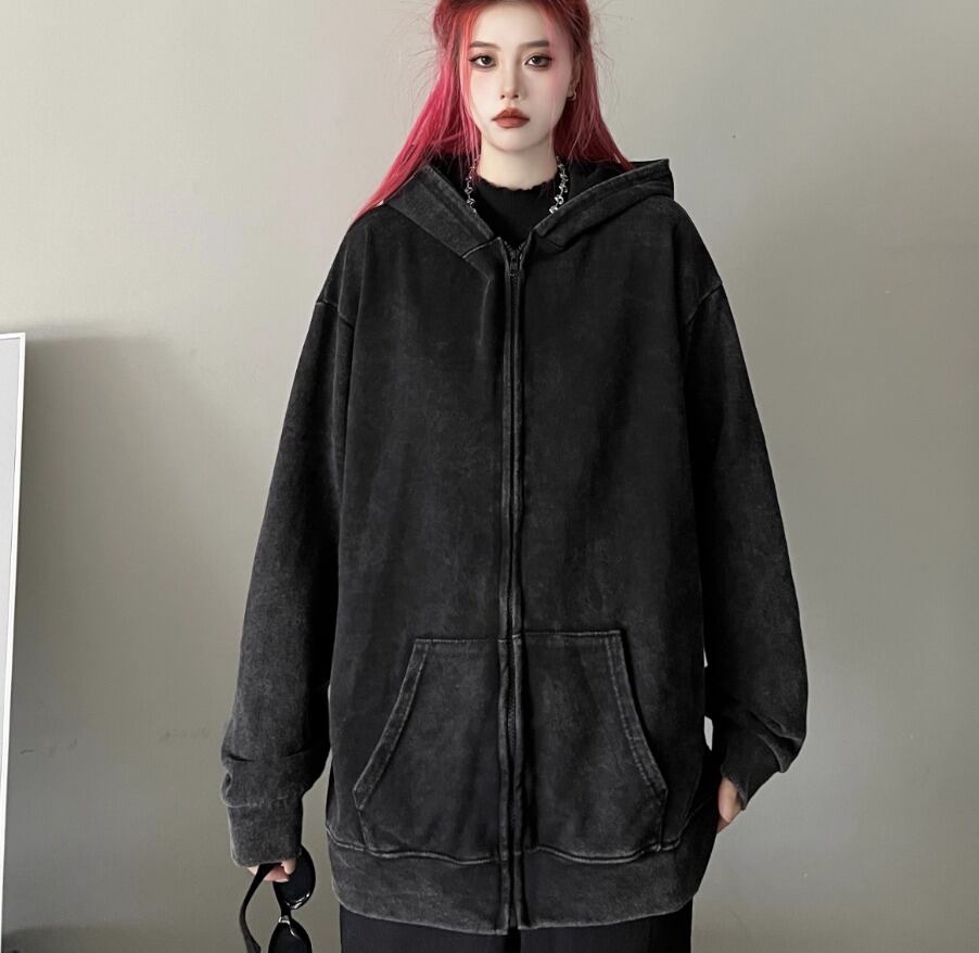 大人気 ブラック 無地 韓国系 ジップパーカー フーディ