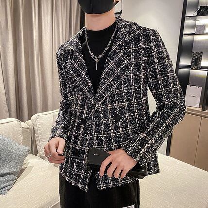大人気 ダブルテーラードジャケット ツイード バイカラー ツイード ジャケット