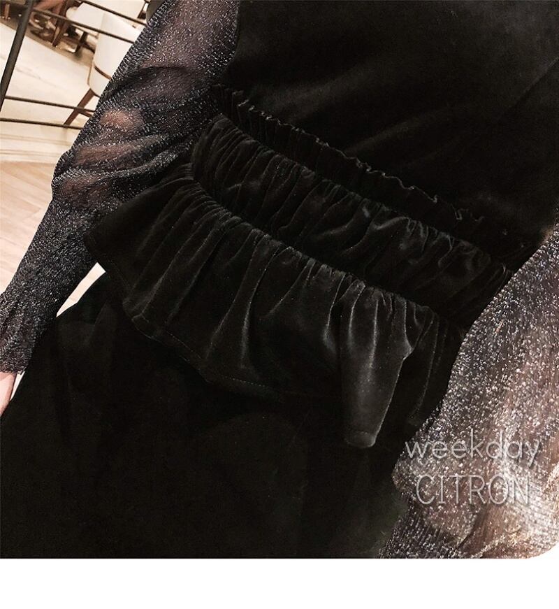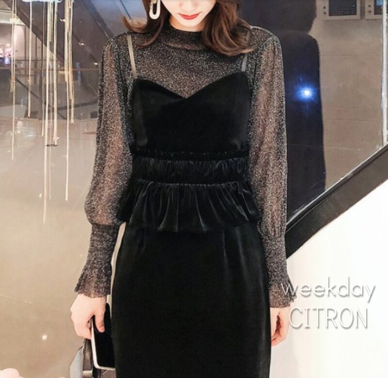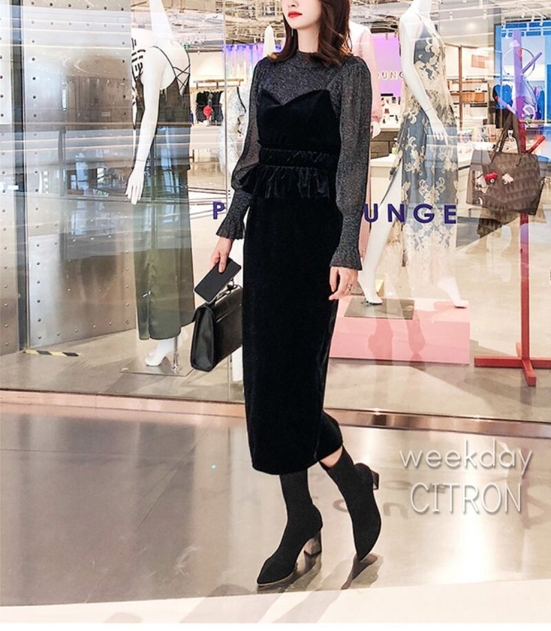 ワンピース スキニー 長袖 ペンシルスカート トップス×ベロアワンピース 美人必備 少し透け感があります!