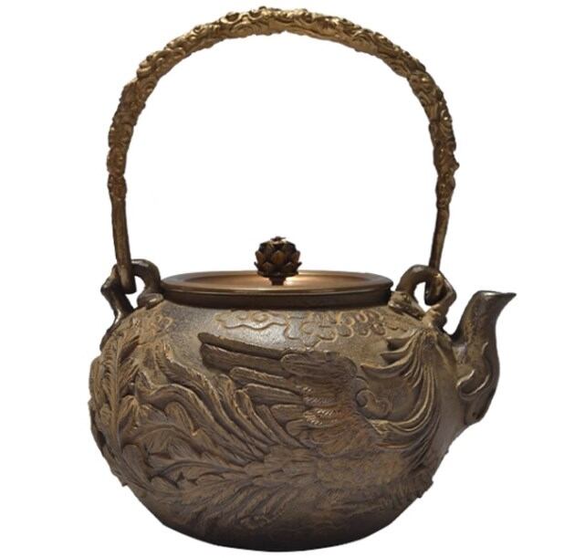 手作 高品質 龍と鳳凰 鉄急須 南部鉄器 鉄瓶 鉄器 鋳鉄ティーポット ホイッスルケトル 1.2L 和風 鉄瓶 ステンレススチールインフューザー付き ストーブセーフケトル 蓄熱性に優 茶道文化