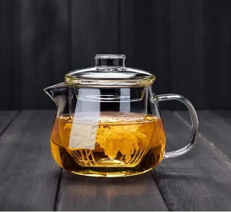 ガラスティーポット 肥厚高温耐性小花ティーポット濾過茶水分離茶家庭用シングルポット 手作り 700ml