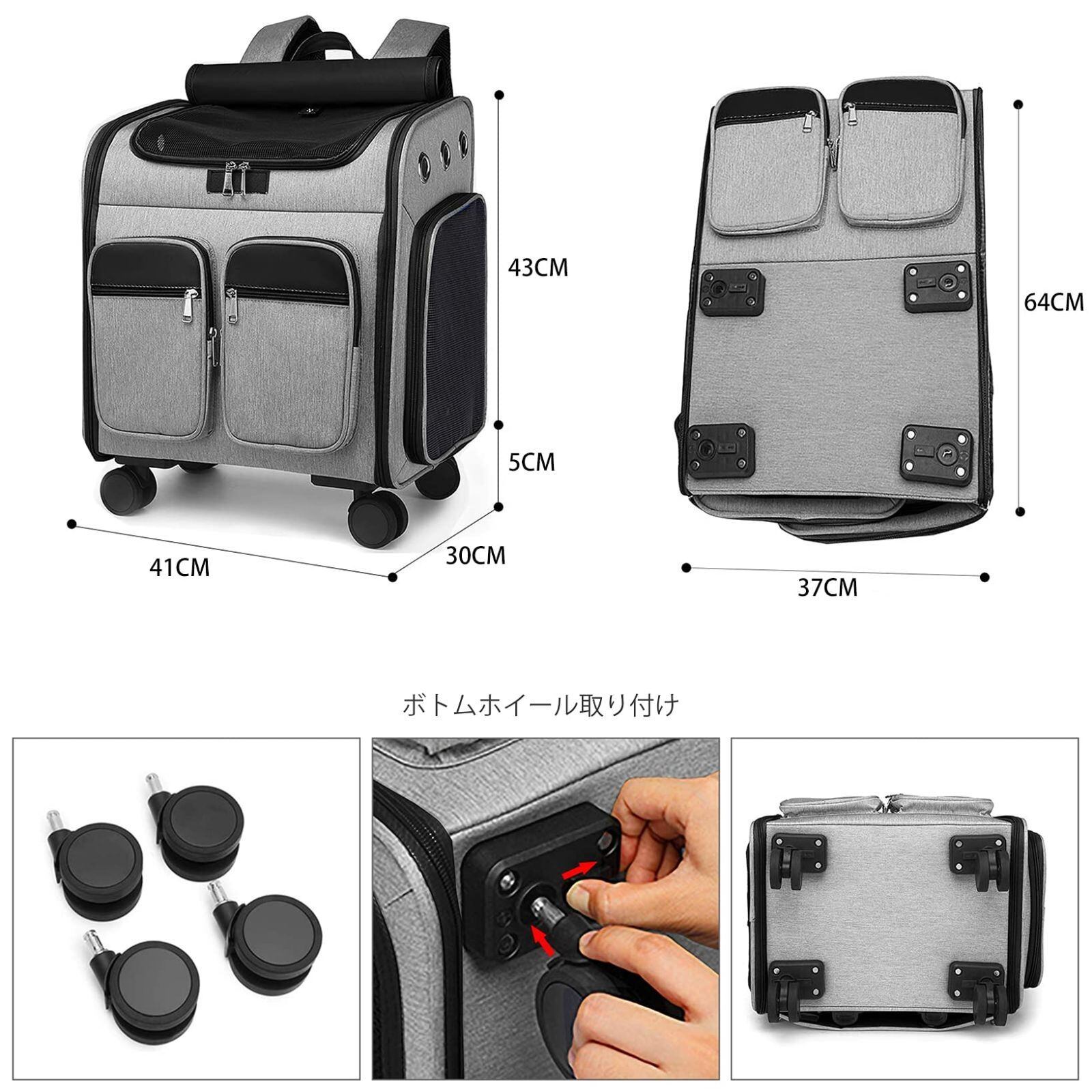 ペットキャリー キャスター付き 猫 猫用 キャリー カート 犬 小型犬 ペット リュックキャリーバッグ 折りたたみ 4way 通気性 散歩 旅行 通院 防災用 (ライトグレー)