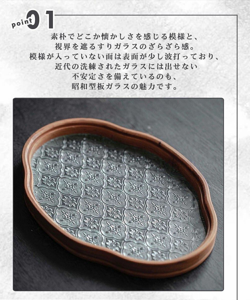トレー 茶席 トレイ 【花海堂柄付き】 ガラス 胡桃の木 木製 お盆 昭和 おしゃれ インテリア 小物入れ 茶道具 中国茶器 急須受台 急須置き ガラス ティートレー お家カフェ 茶托 トランペット
