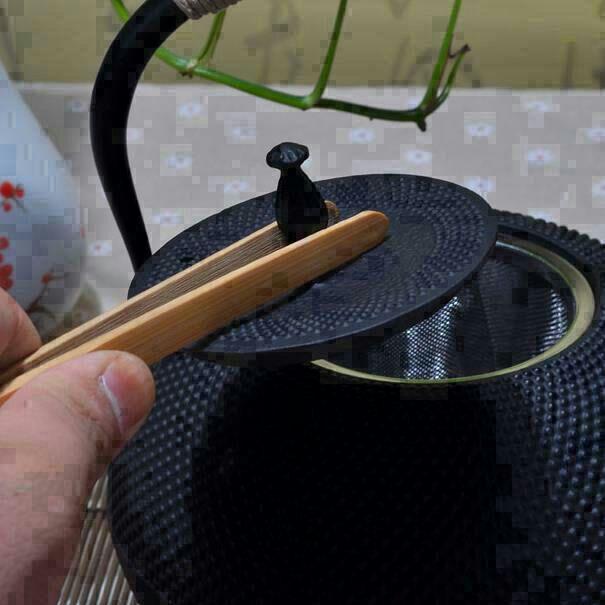 鉄瓶内部を軽くすすいで水を八分目ほど入れて、お茶の葉を茶さじ1~2杯程入れ20分ほど煮込んでください。