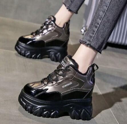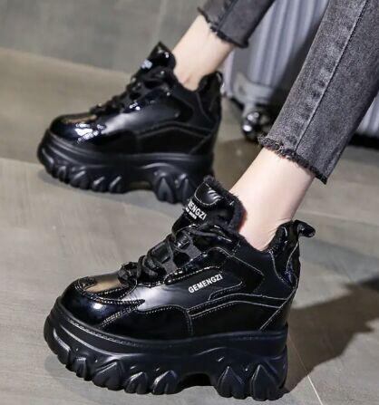 厚底スニーカー 紐結び厚底アウトドアシューズ靴レディースカジュアル 超人気