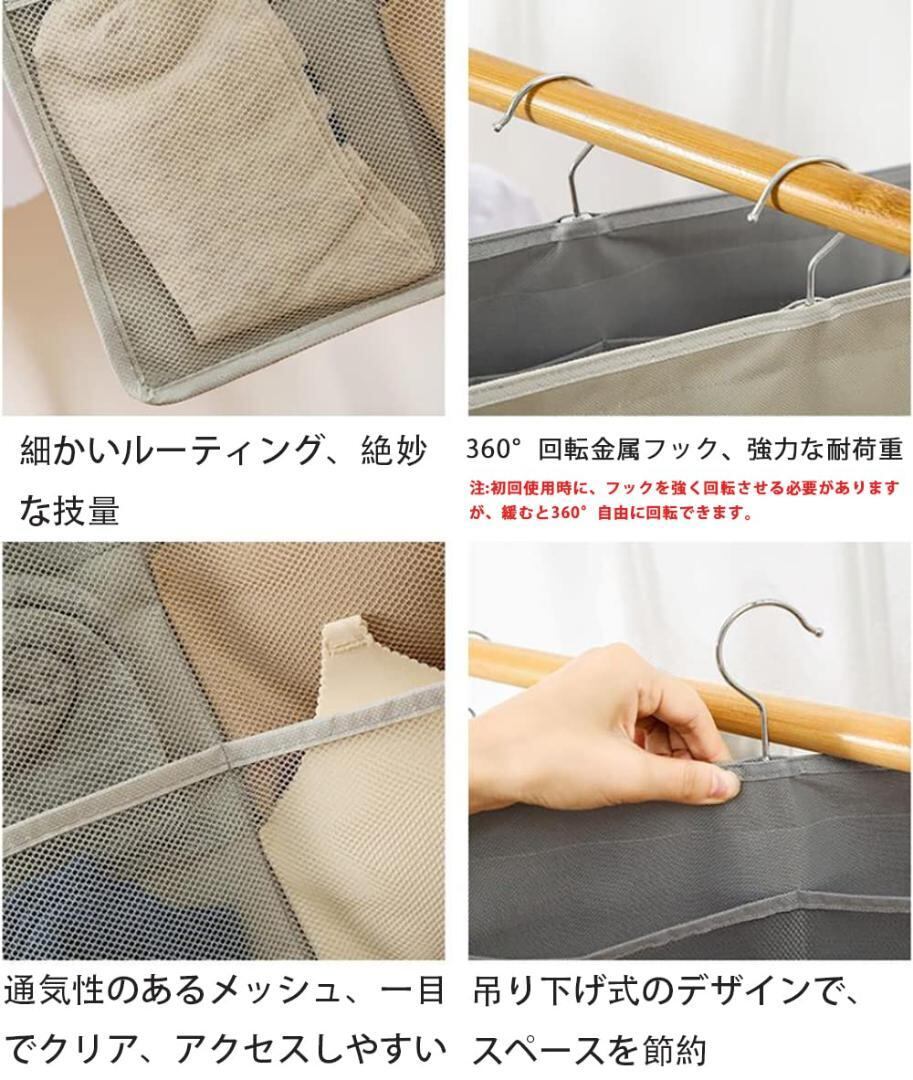 ☆取り付け簡単: クローゼットのロッドに掛けるだけで簡単に設置。靴下や下着、ブラジャーなどの小物収納に便利。