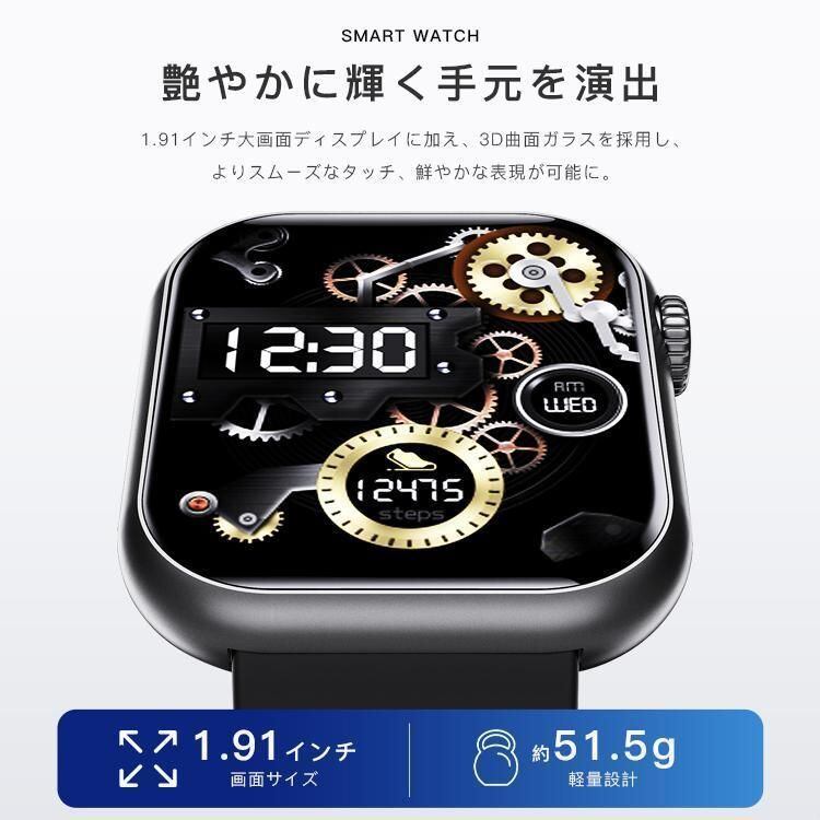 スマートウォッチ 血圧測定 血糖値 血中酸素 Bluetooth通話 1.91インチ 大画面 心拍 IP67防水 歩数計 電卓 照明機能付き 母の日 プレゼント
