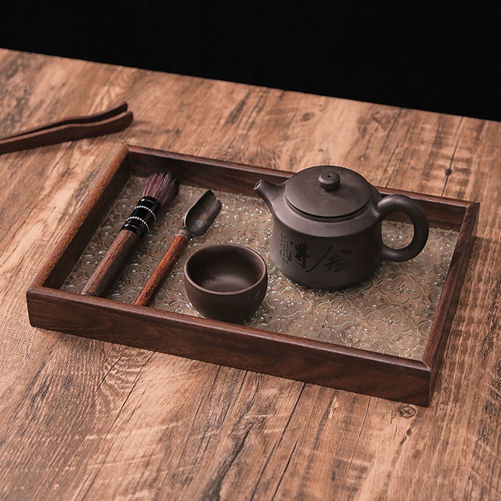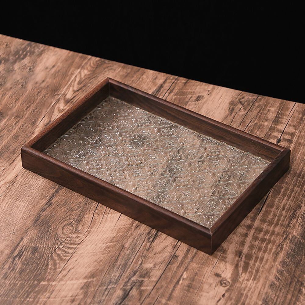 花海堂 トレー ガラス 矩形 トレイ 木製 お盆 シノワ レトロ おしゃれ インテリア 小物入れ 茶道具 中国茶器 急須受台