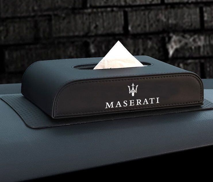 マセラティ Maserati 車用ティッシュボックス PUレザー 高級ティッシュケース 磁石開閉 車内収納ケース ロゴ入り 防水 ブラック