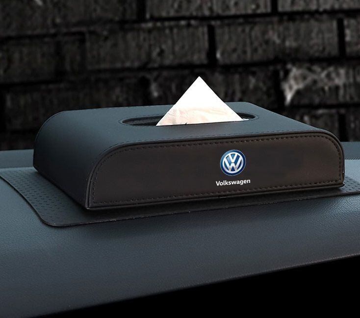 フォルクスワーゲン VOLKSWAGEN 車用ティッシュボックス PUレザー 高級ティッシュケース 磁石開閉 車内収納ケース ロゴ入り 防水 ブラック
